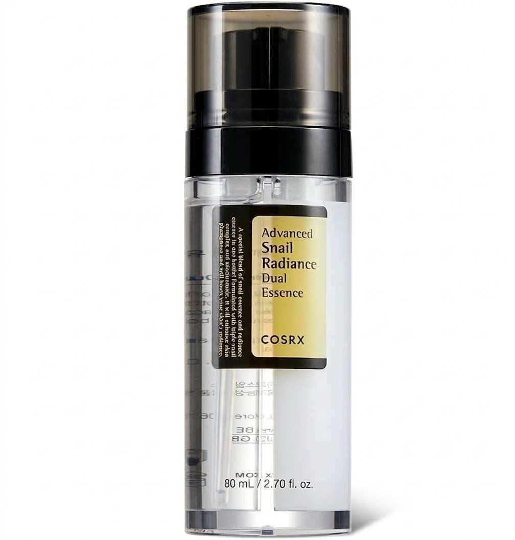 Doble esencia con 74,3% de complejo de mucina de caracol y 5% de niacinamida. Hidrata, mejora elasticidad, refuerza la barrera cutánea y aporta luminosidad con textura ligera.